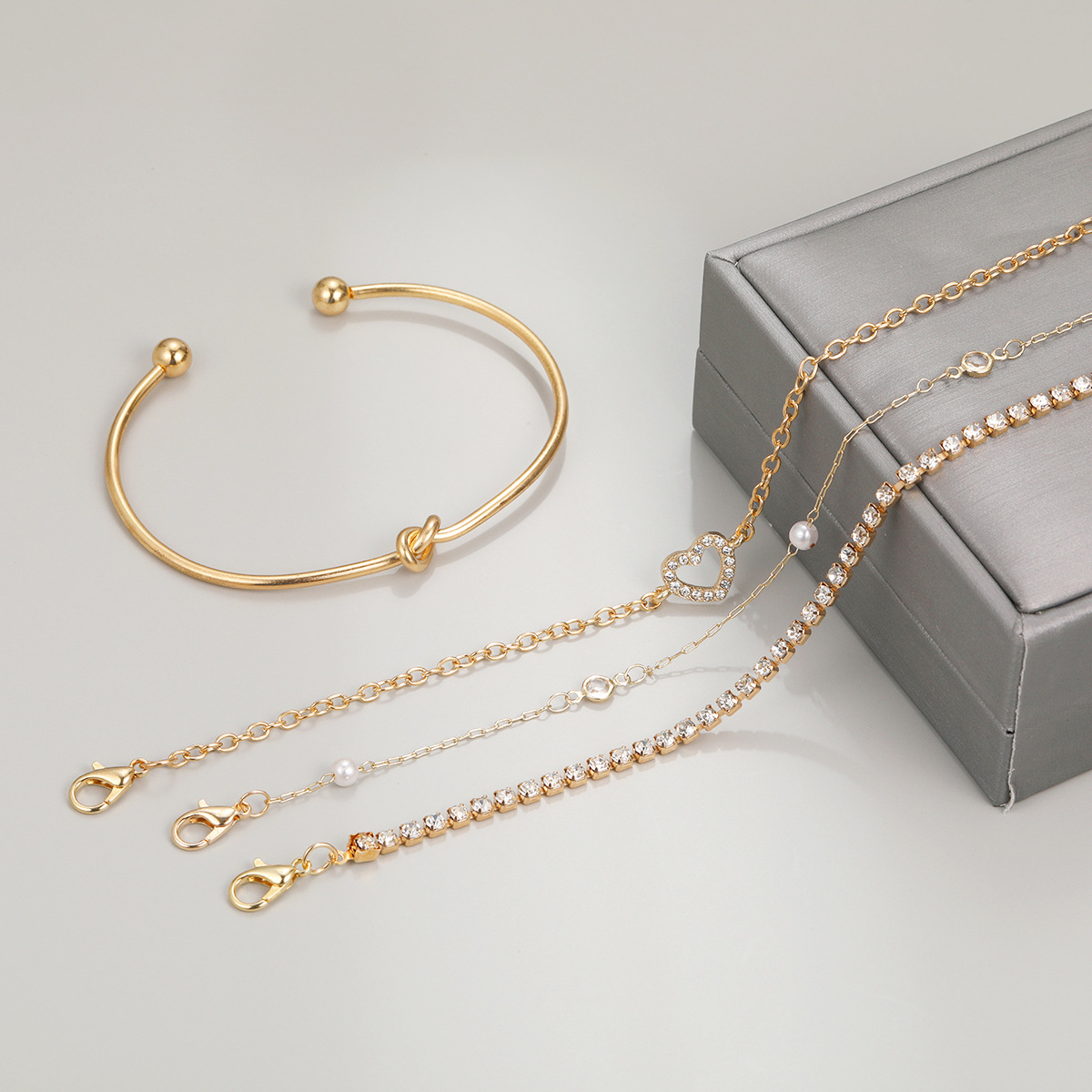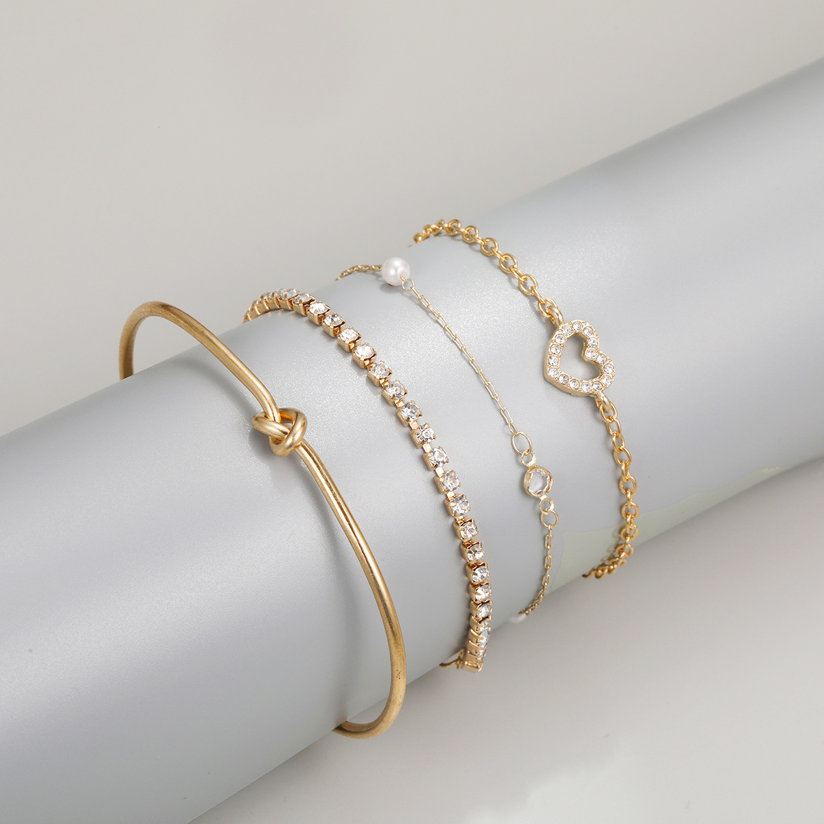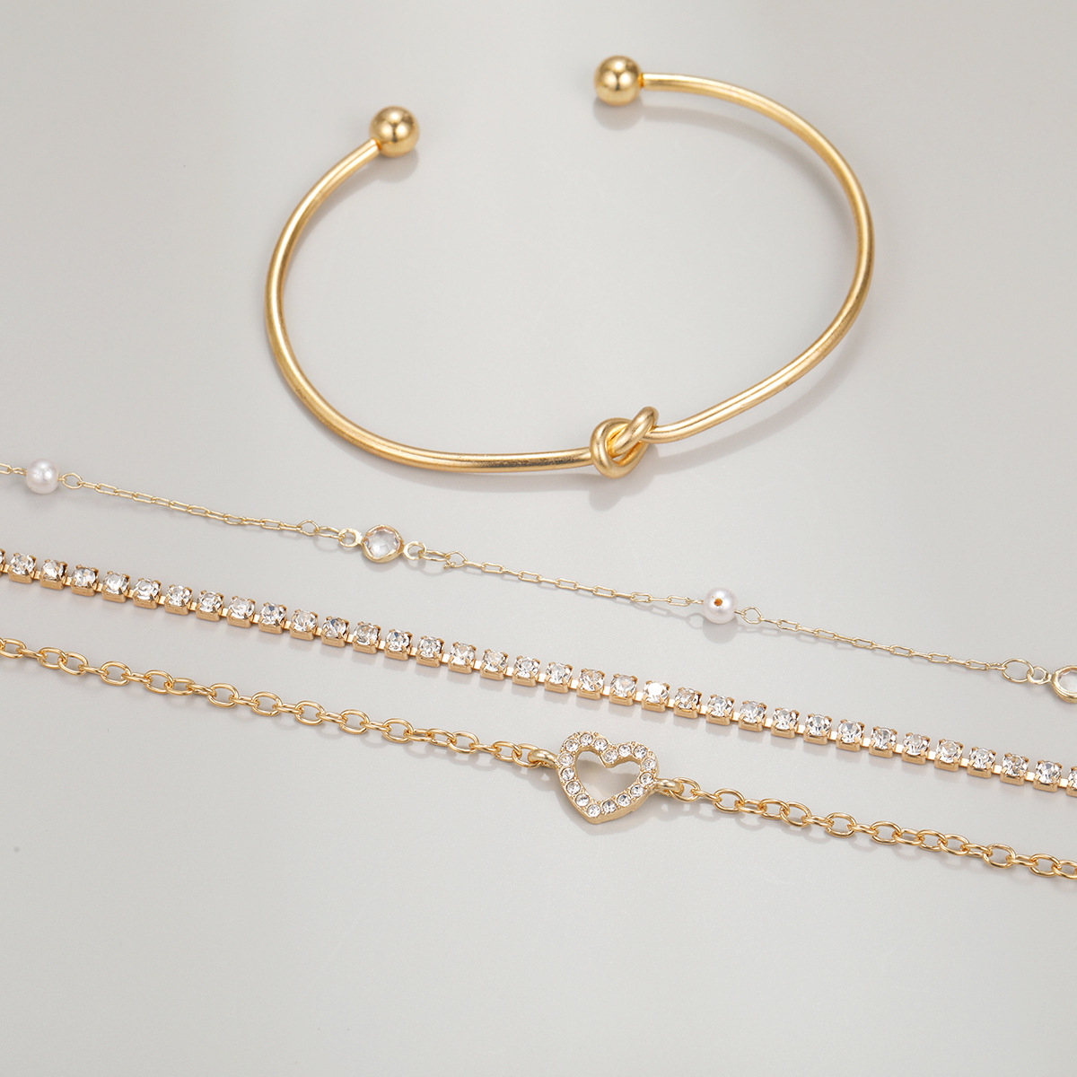 Creative Full Diamond Hollow Heart Bracelet Suit
