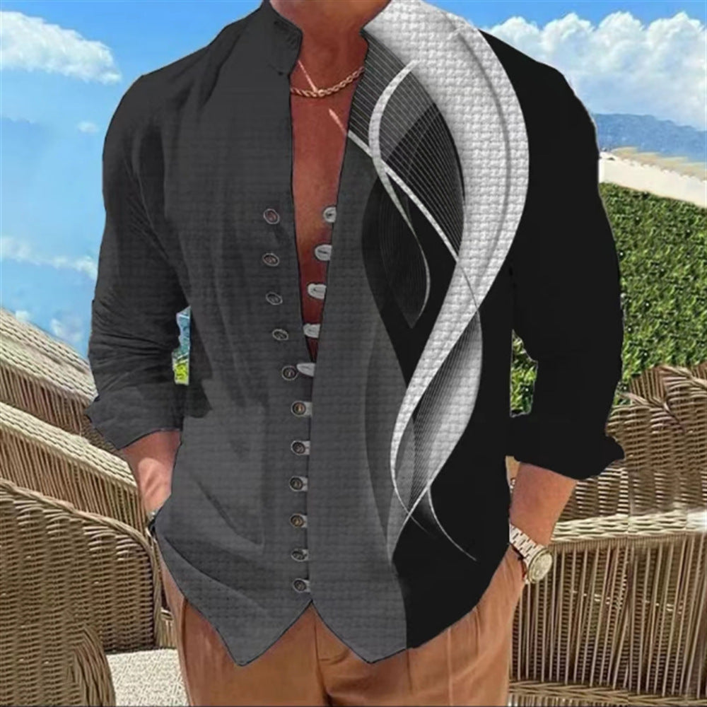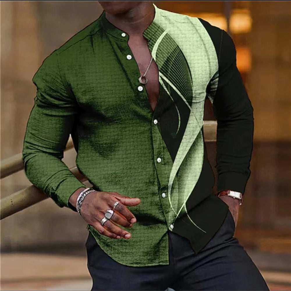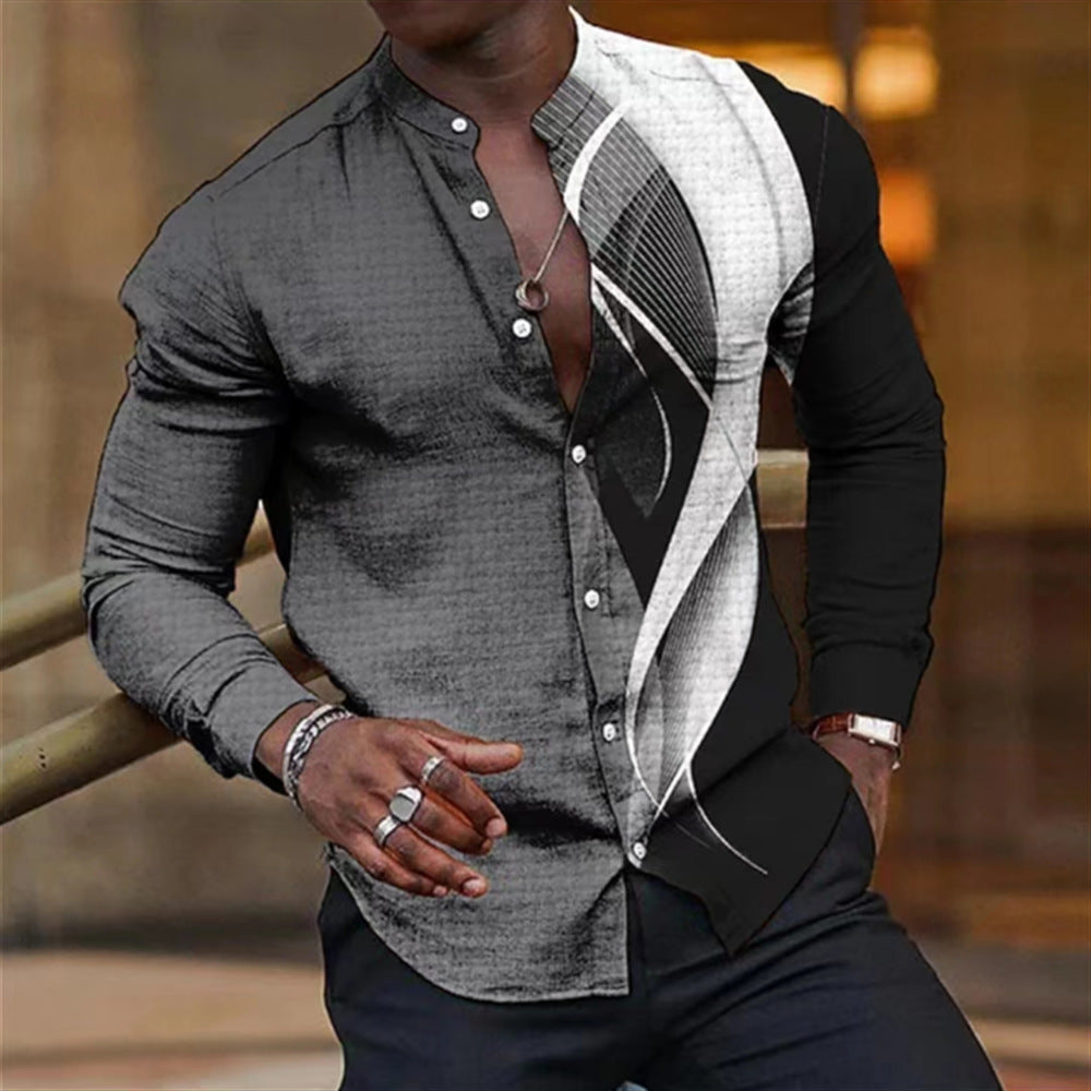 Printed Single-breasted Long Sleeve Shirt For Men