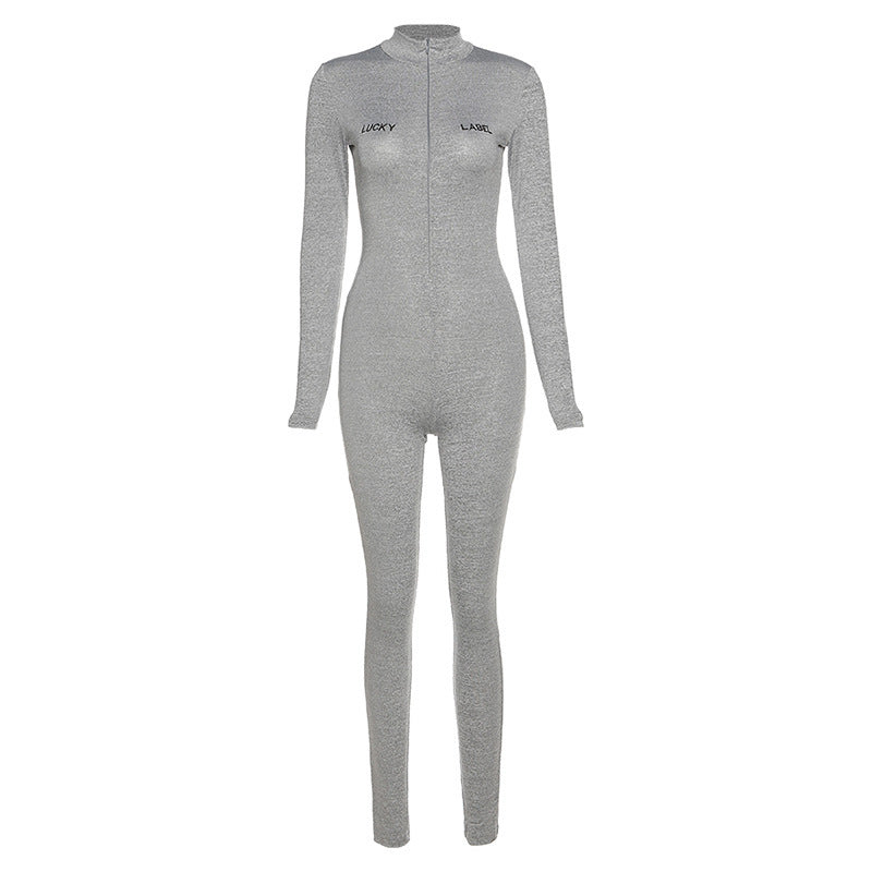 Autumn And Winter Women's Embroidered Tight-fitting Fashion Sports Jumpsuit